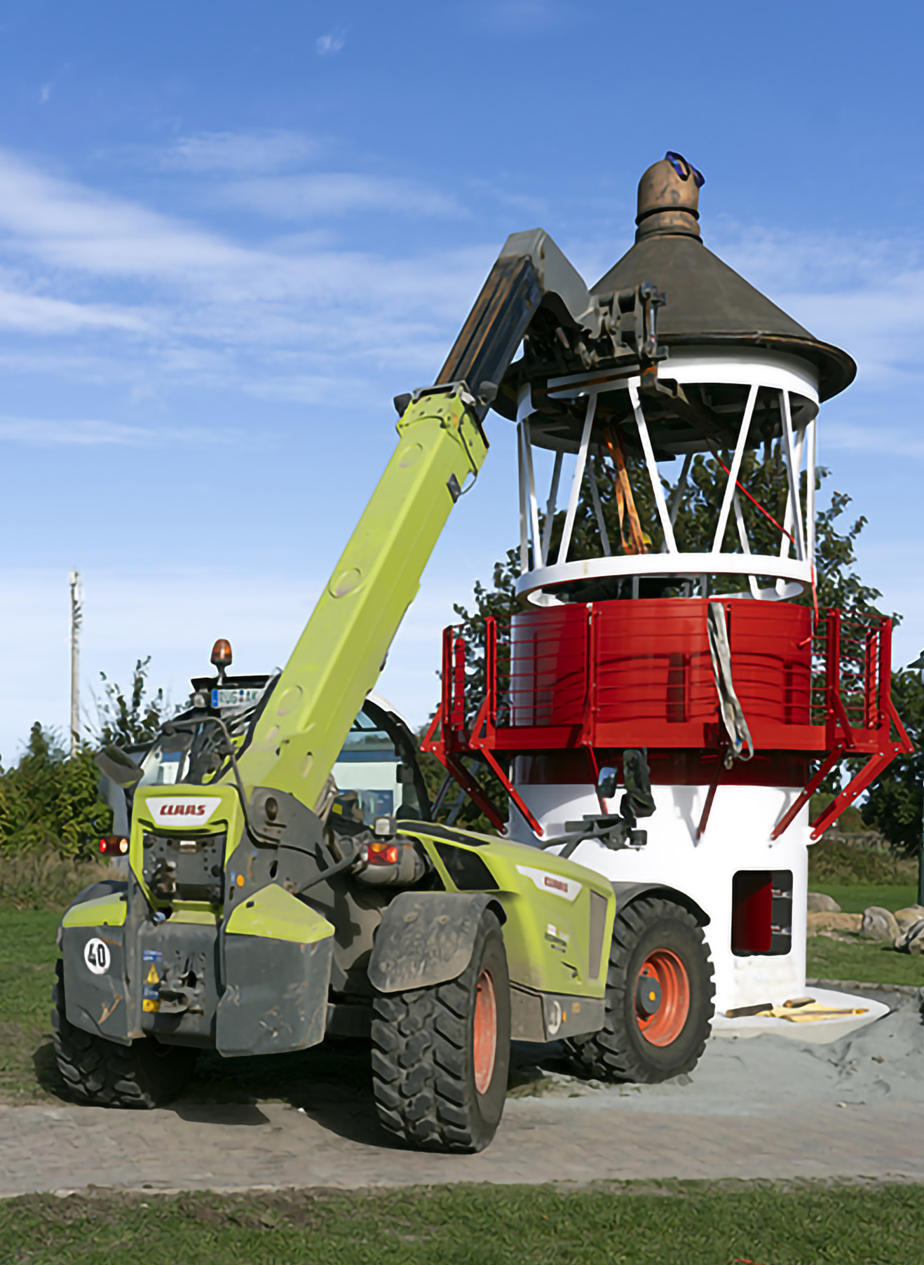 Der Turm Langlütjennordsteert, der 2023 nach Kap Arkona überführt werden sollte, zerbrach beim Verladen, sodass ein Neubau erforderlich war.